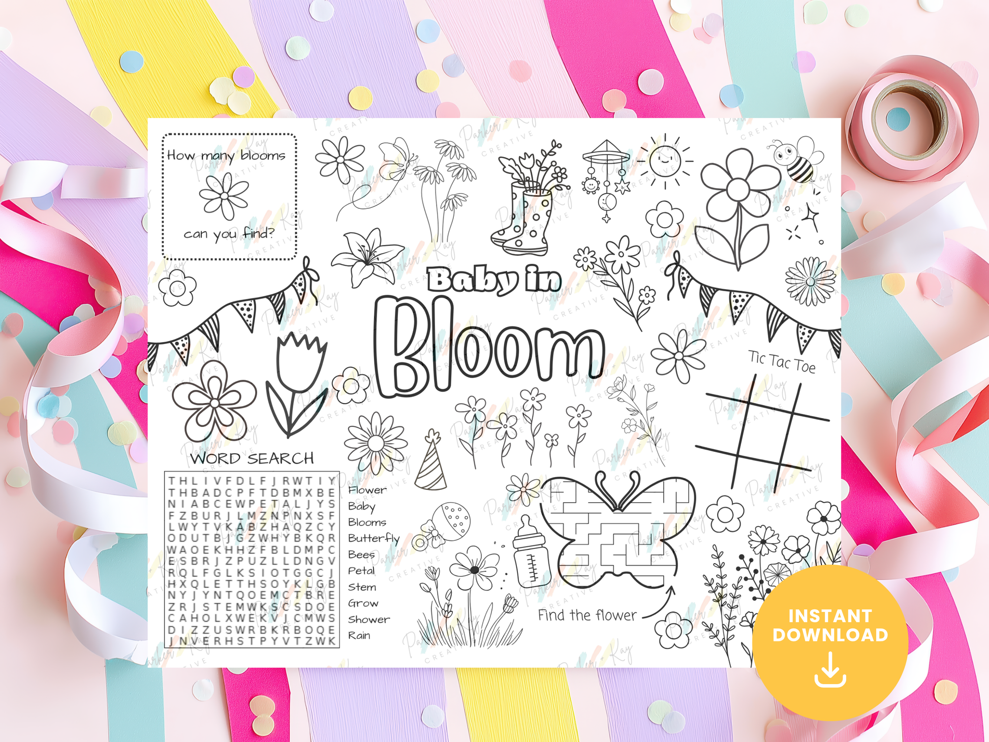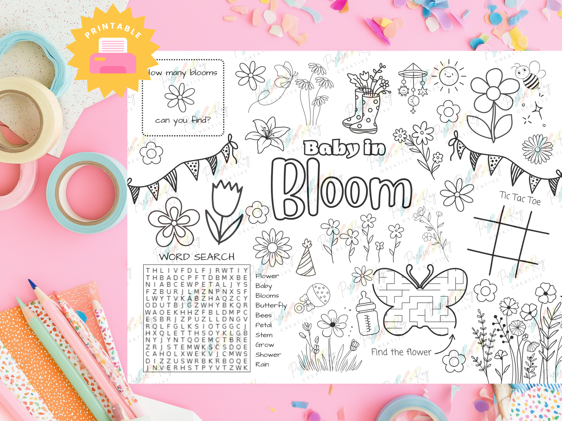 Baby in Bloom Baby Shower Activity Sheet for Kids