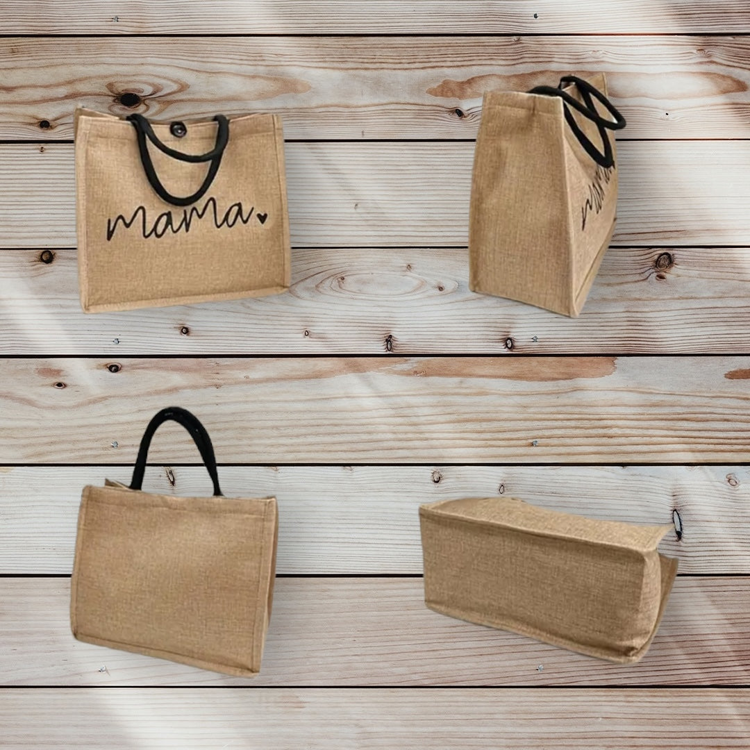 Stylish and practical, this tote will become a favorite for errands, shopping, or gift bag for a new mama. With a burlap exterior, lined interior and cute button closure, this bag can be used for many different things.